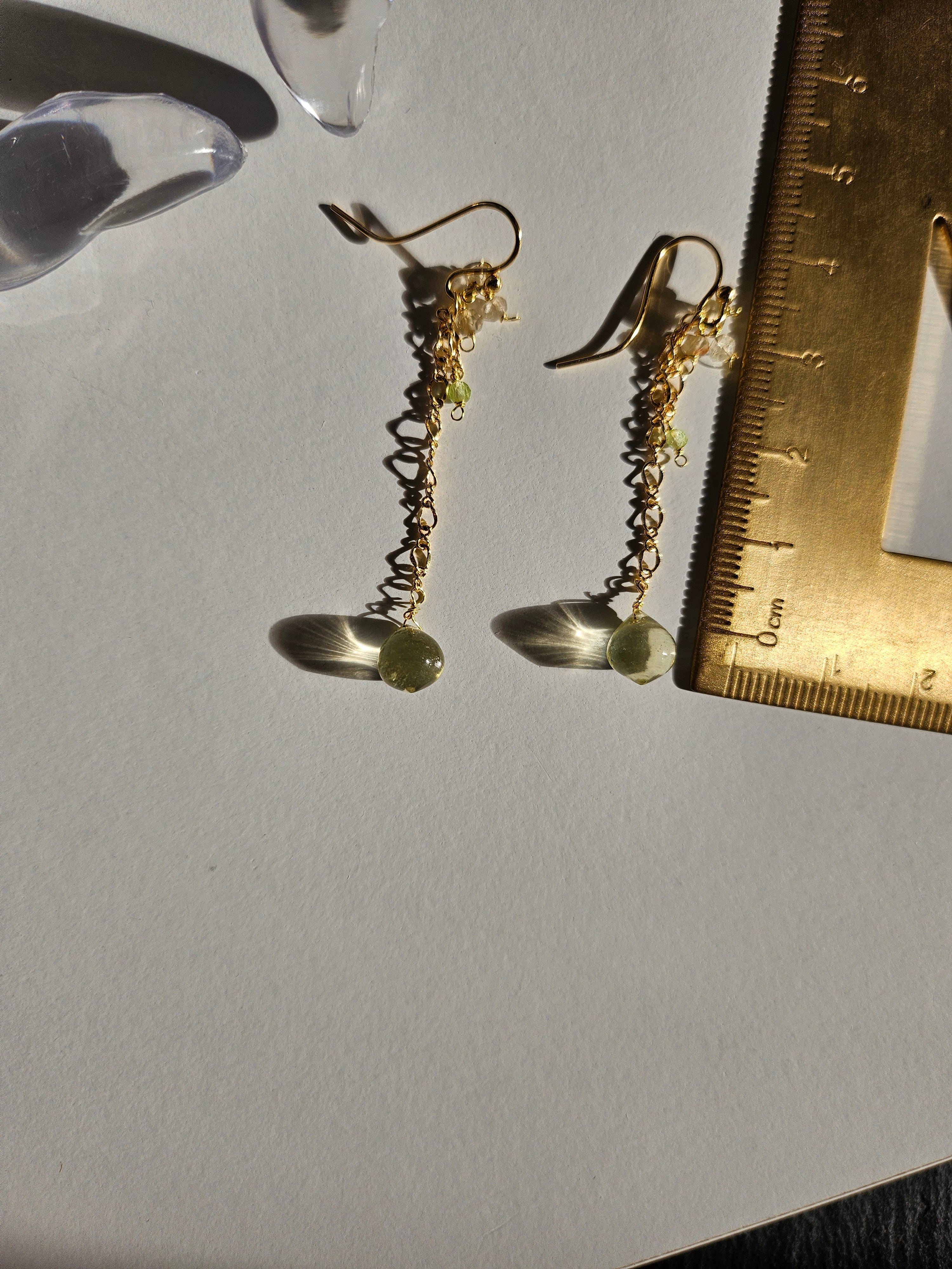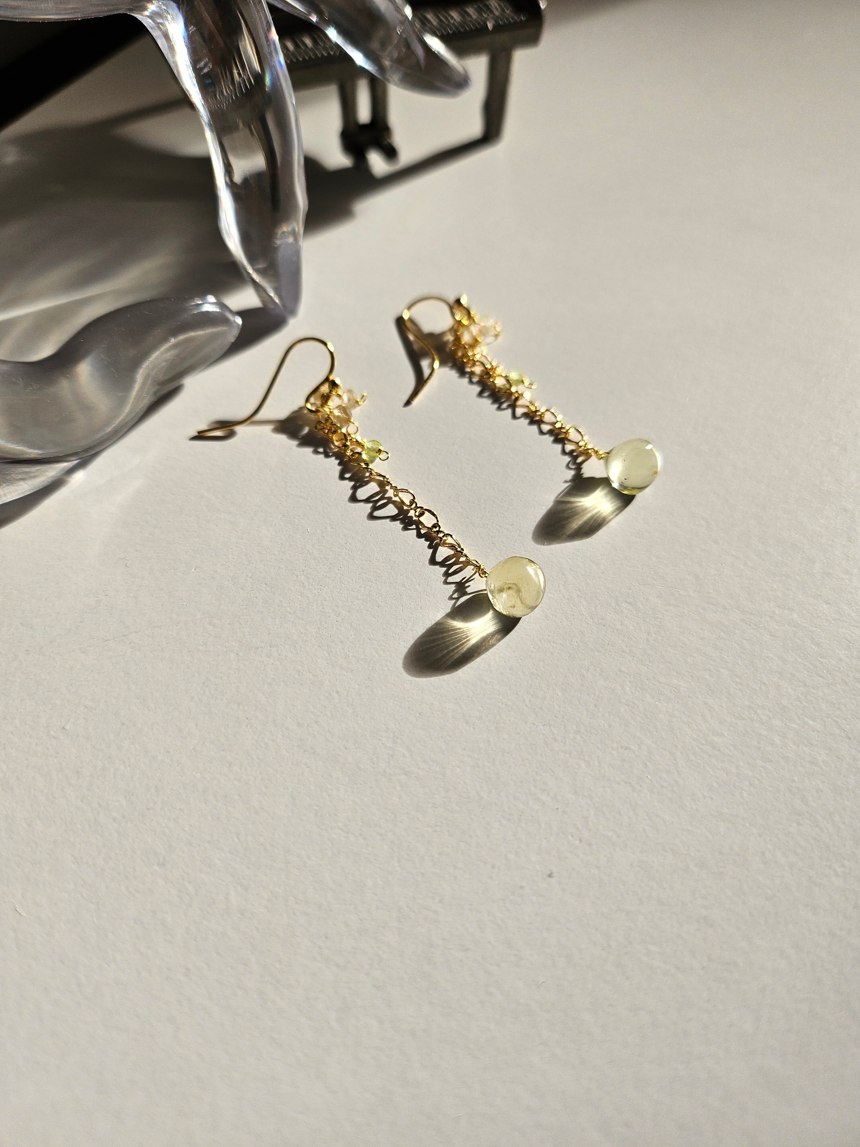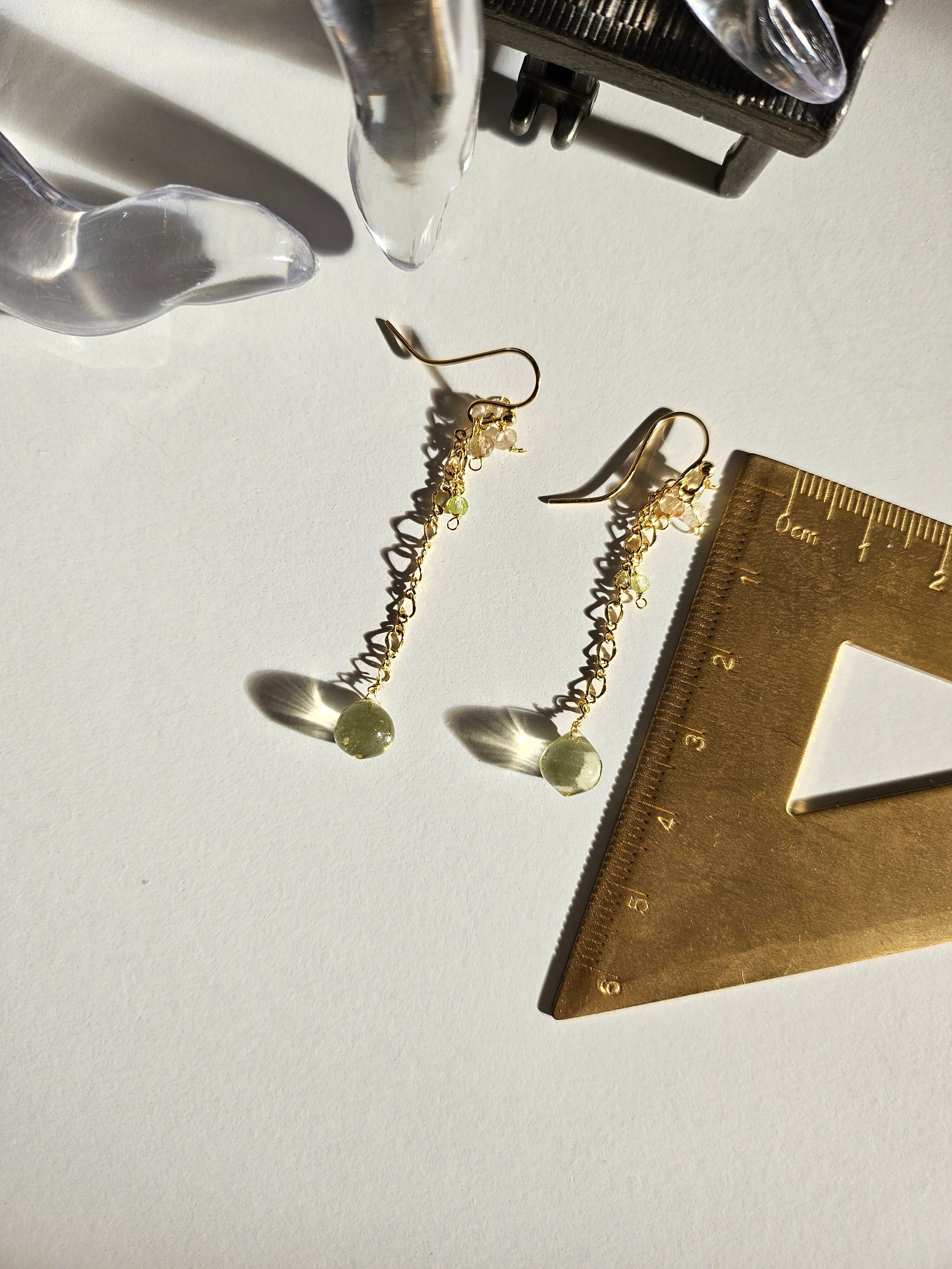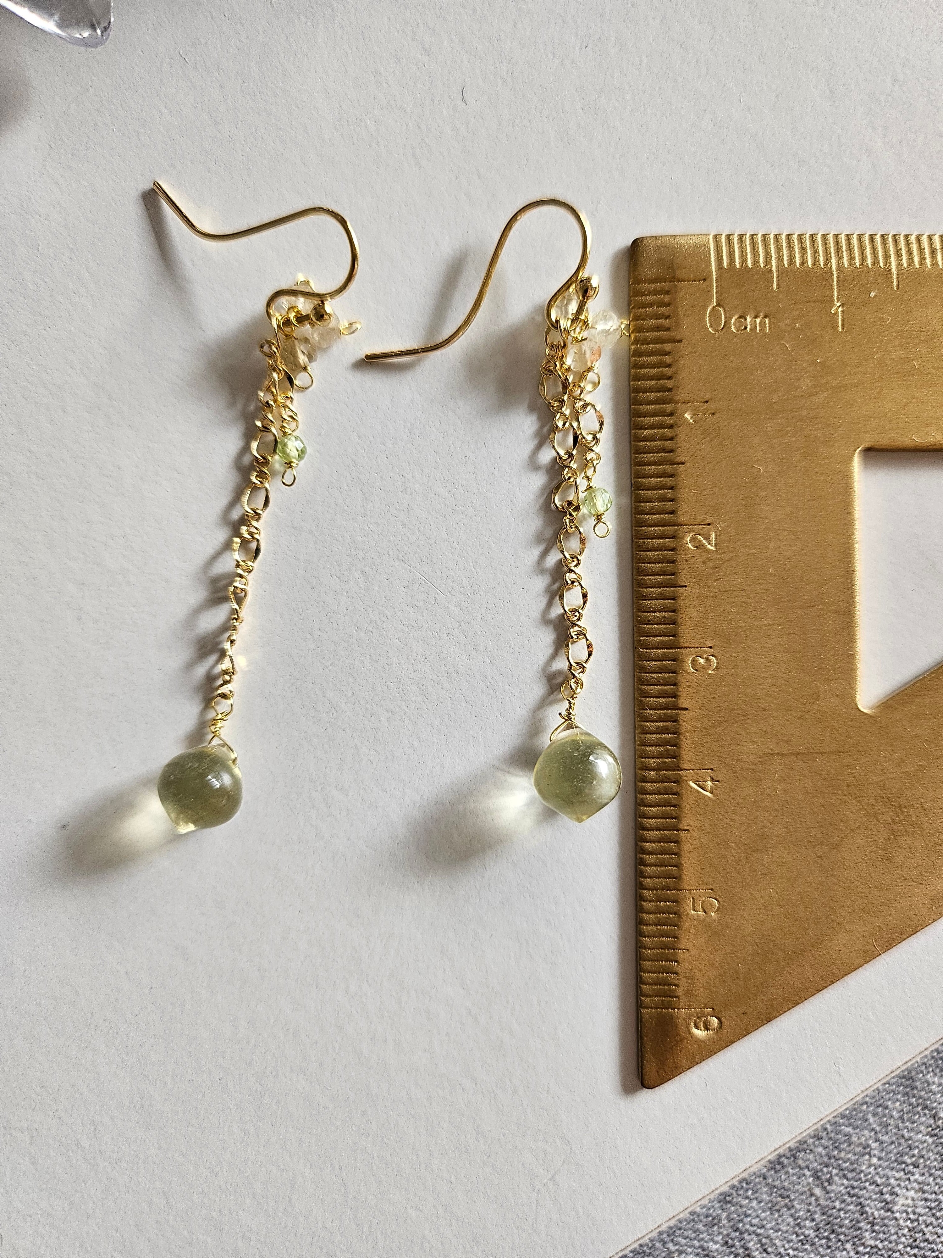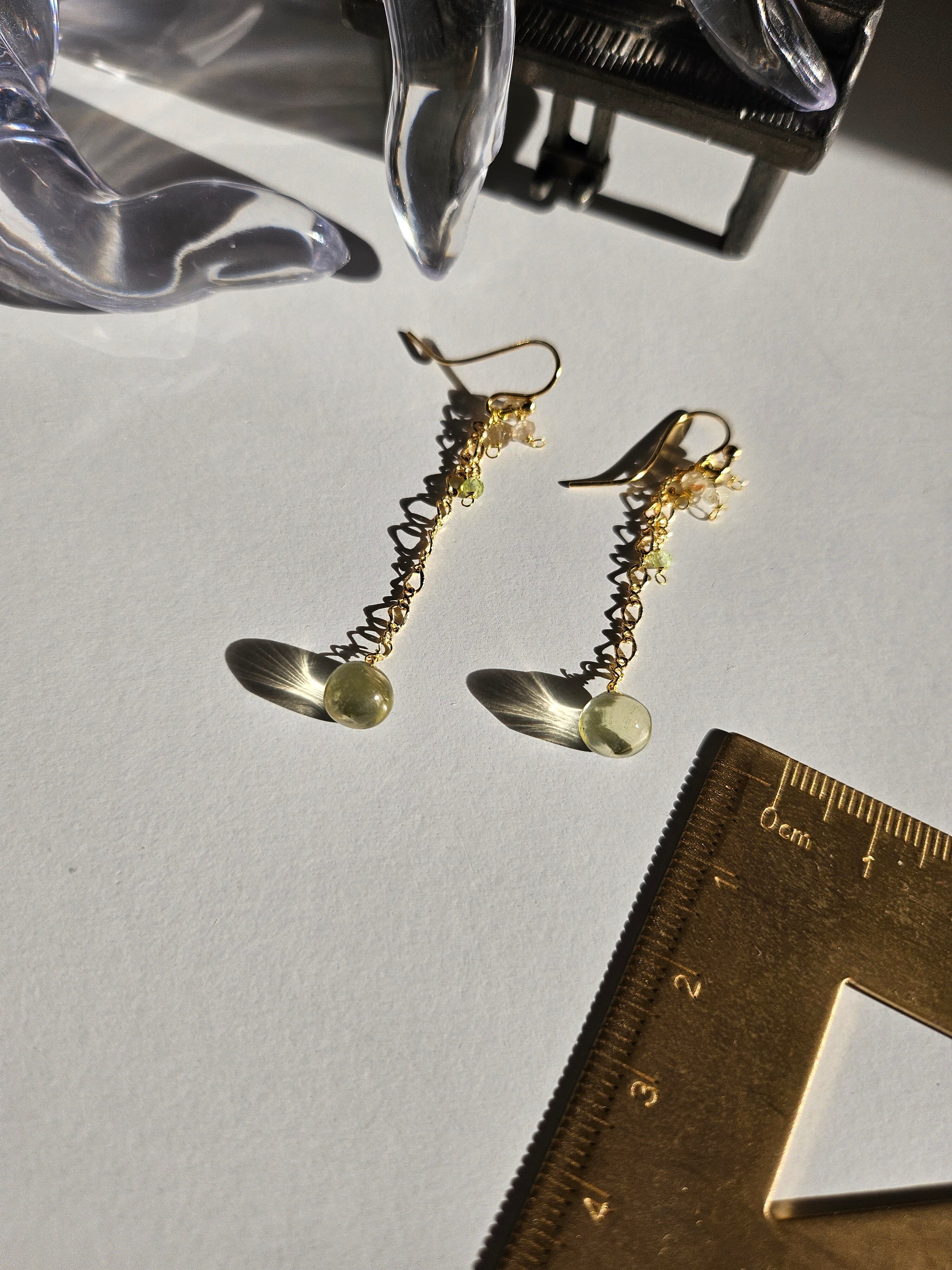レモンクウォーツとペリドットの14kgfチェーンピアス