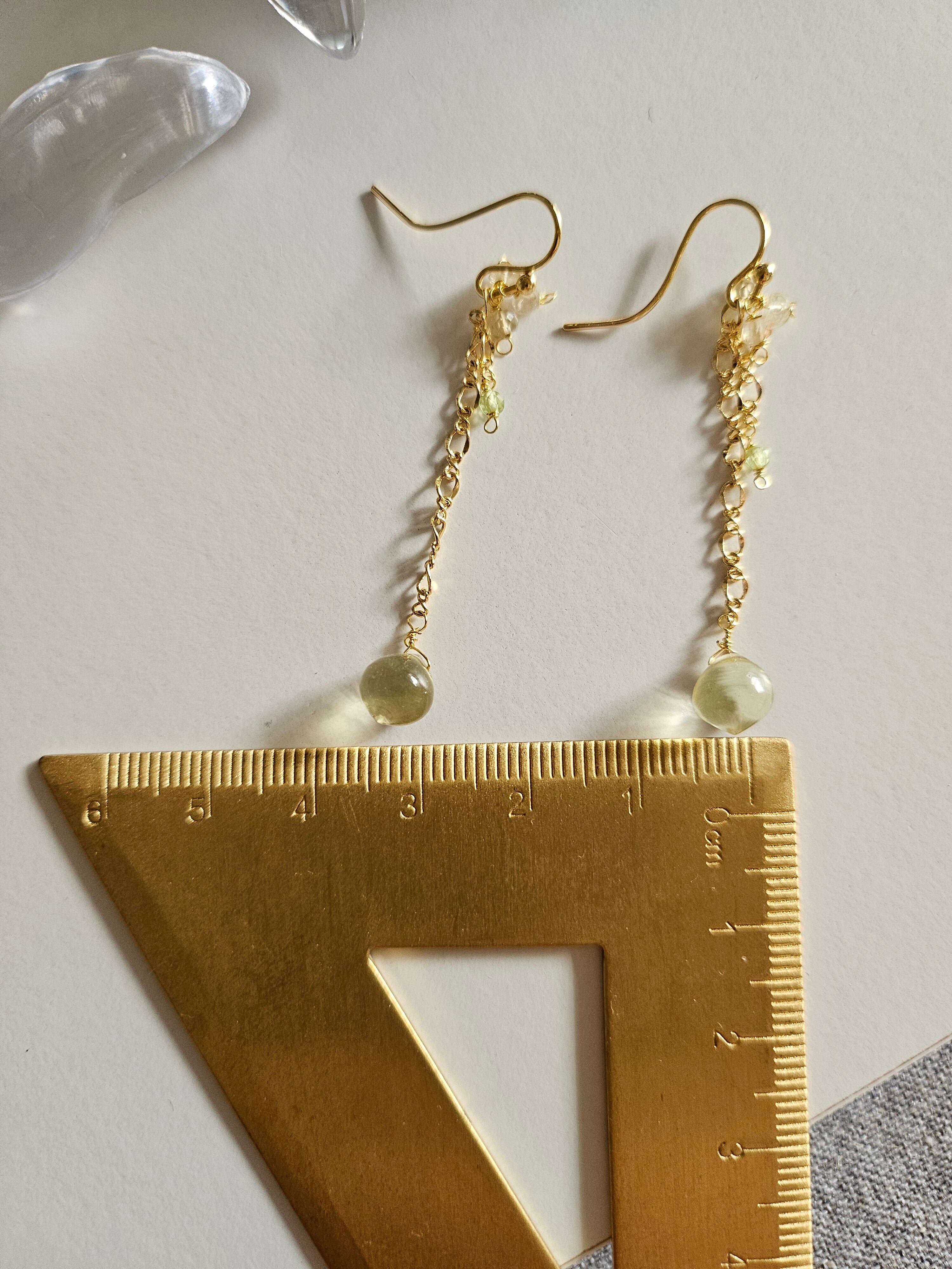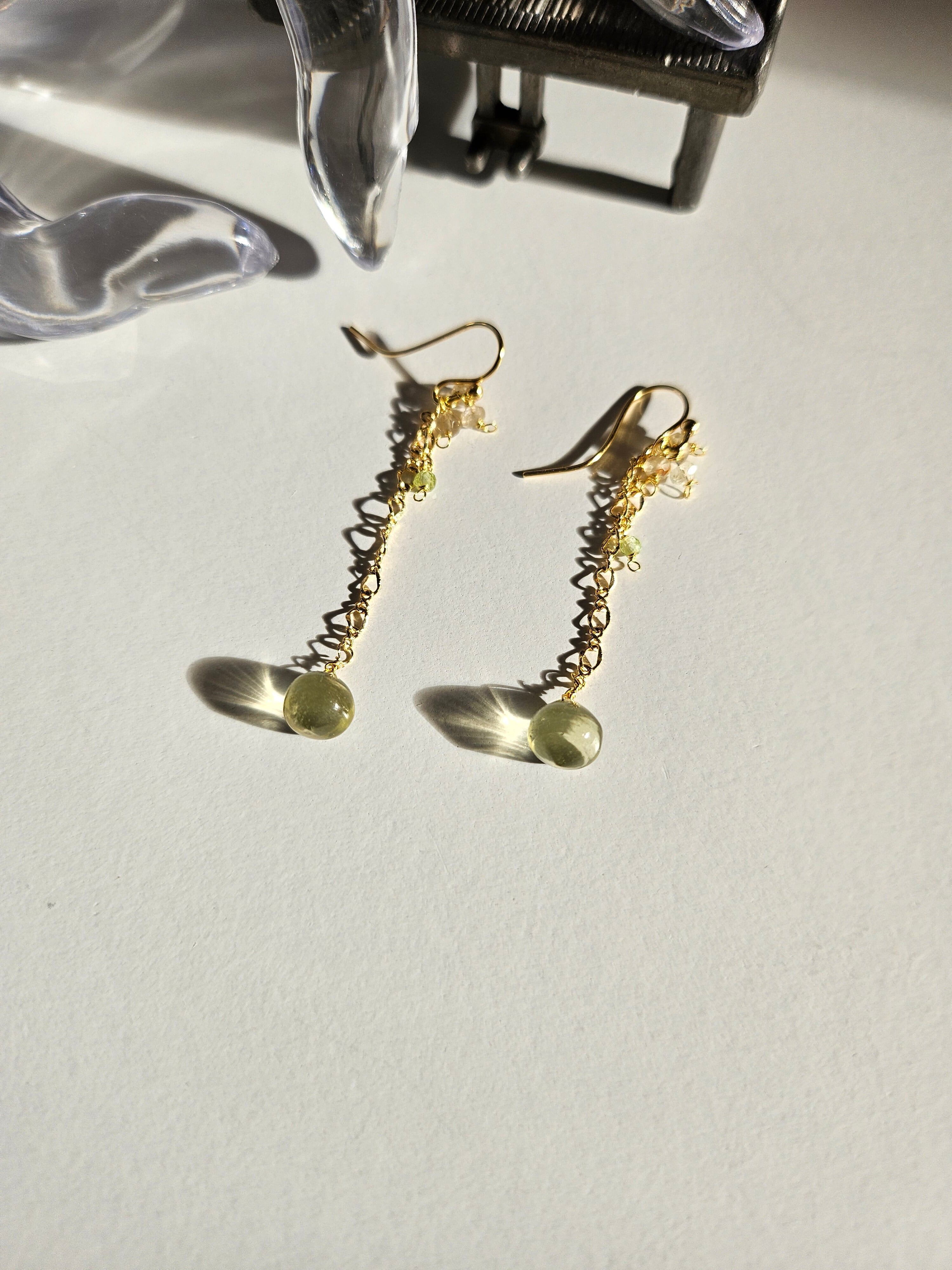 透明感のあるレモンクウォーツと鮮やかなペリドットを使用した、エレガントなチェーンピアスです。