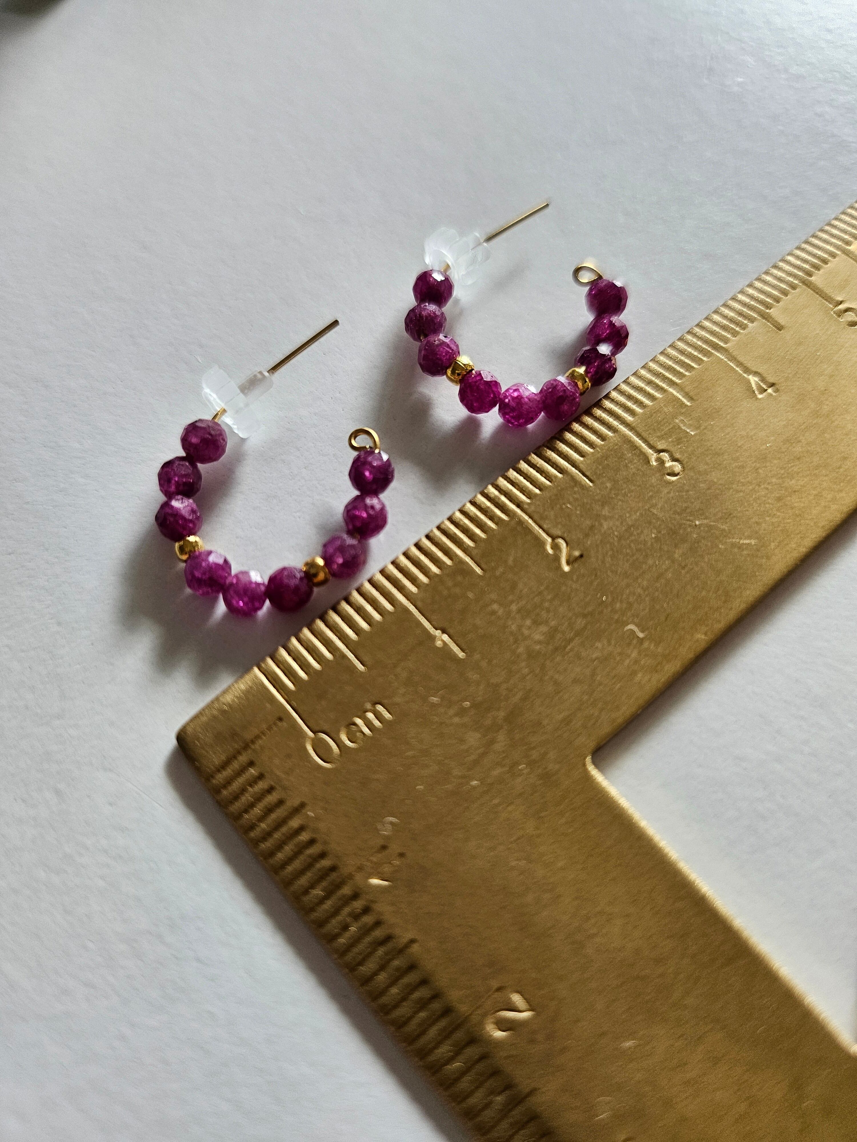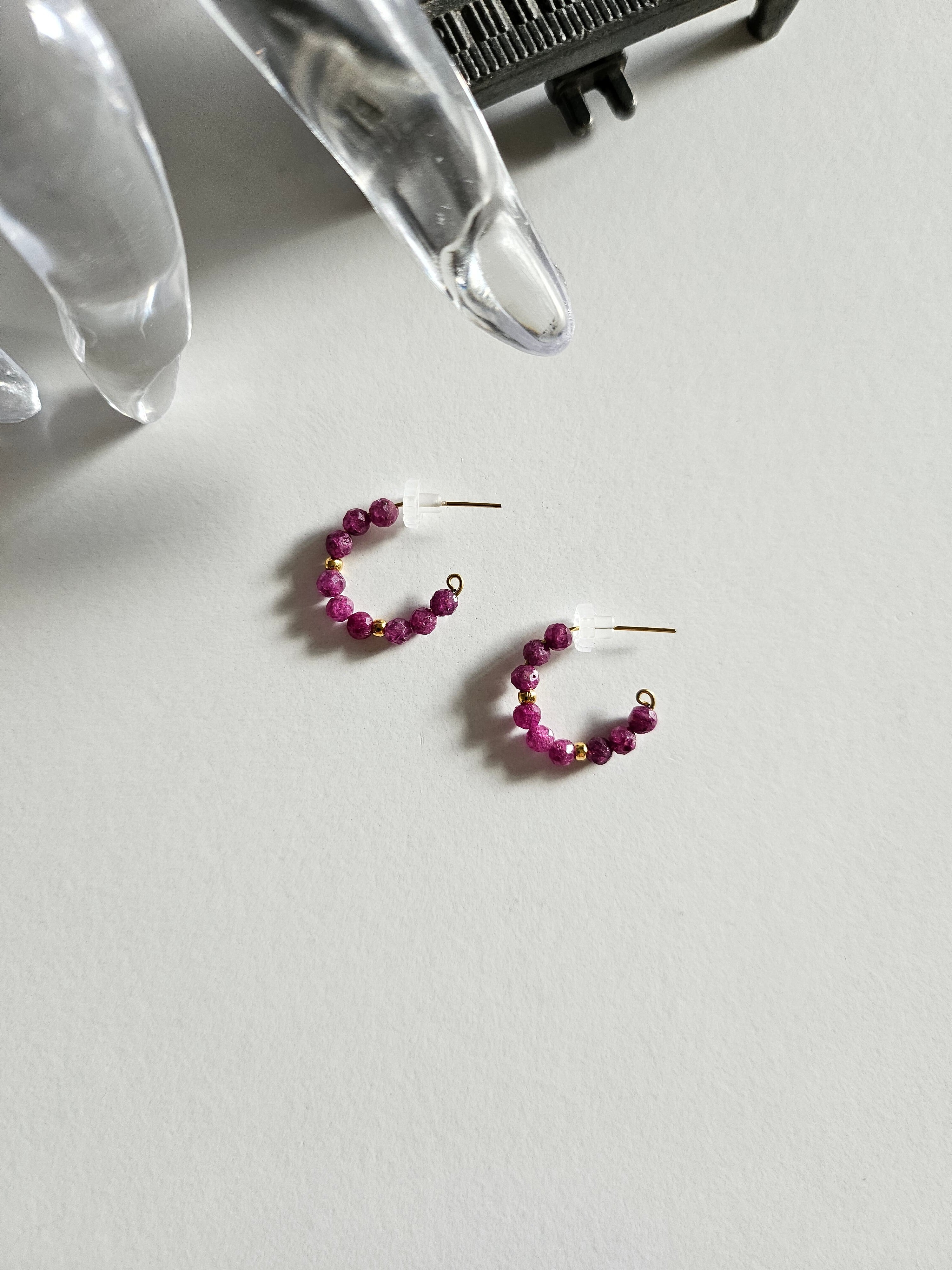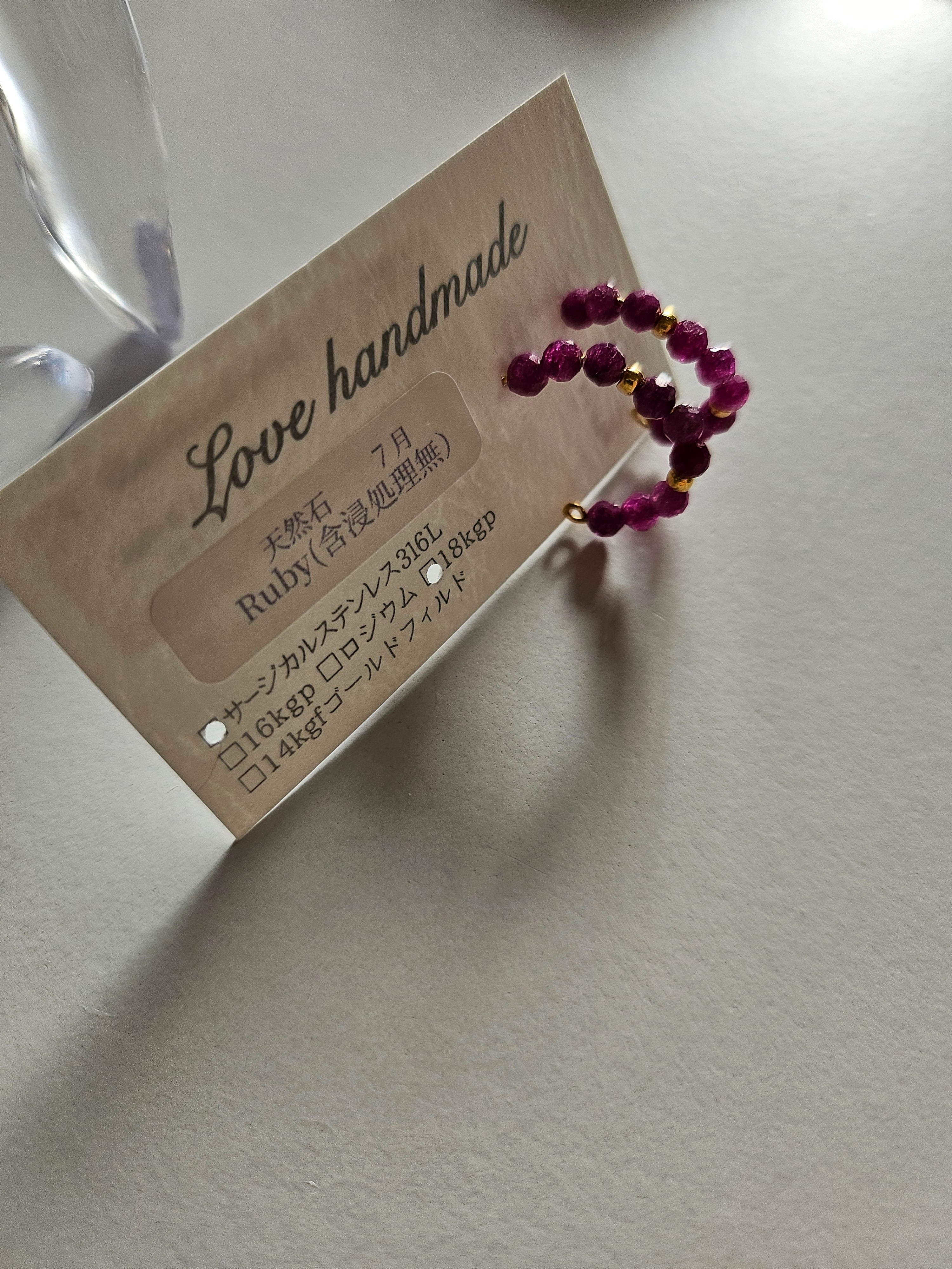 天然石のフープピアス 無垢な輝き含浸処理無Ruby