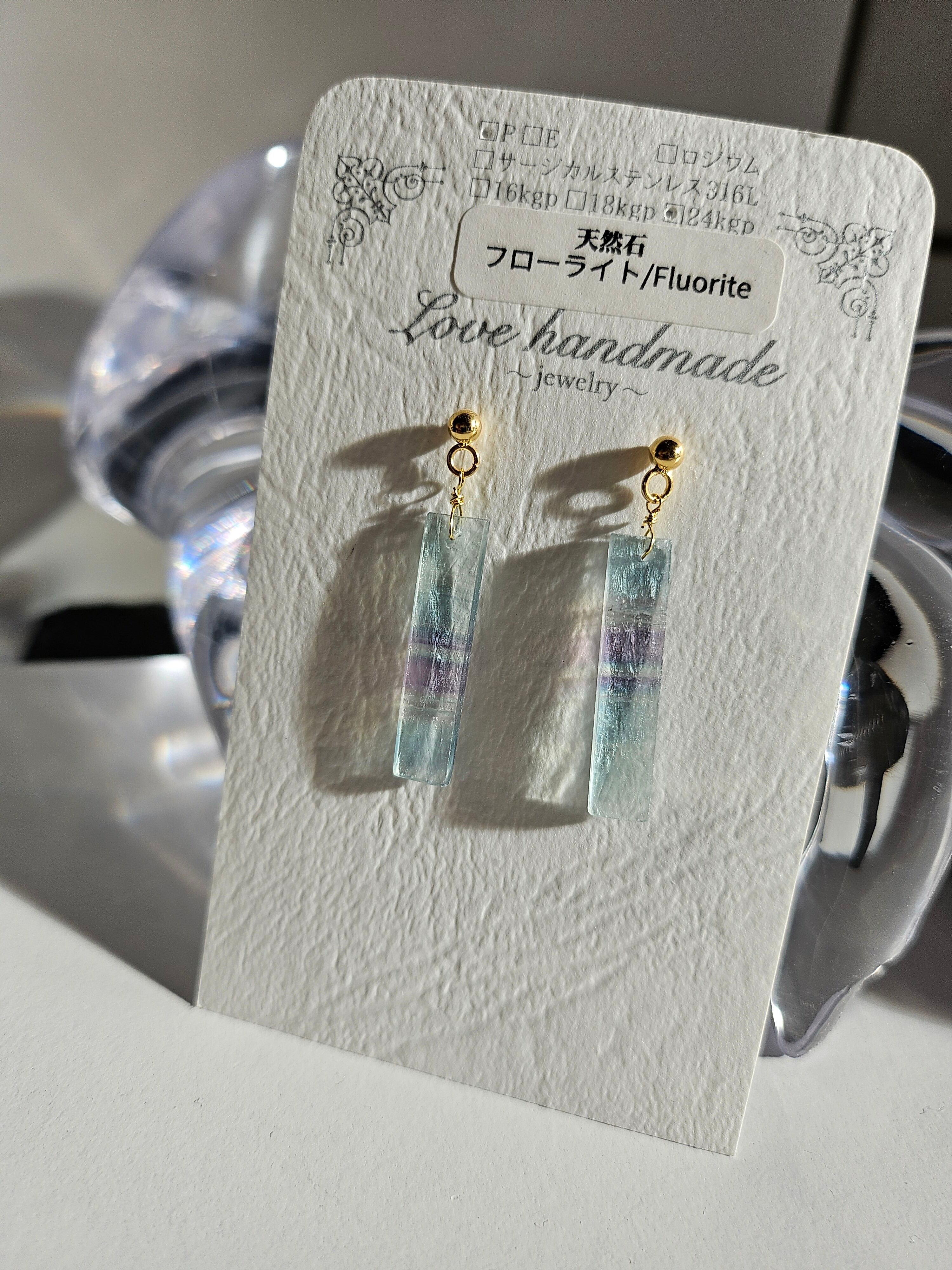 Stickフローライト Sus316Lピアス 16kgpイヤリング