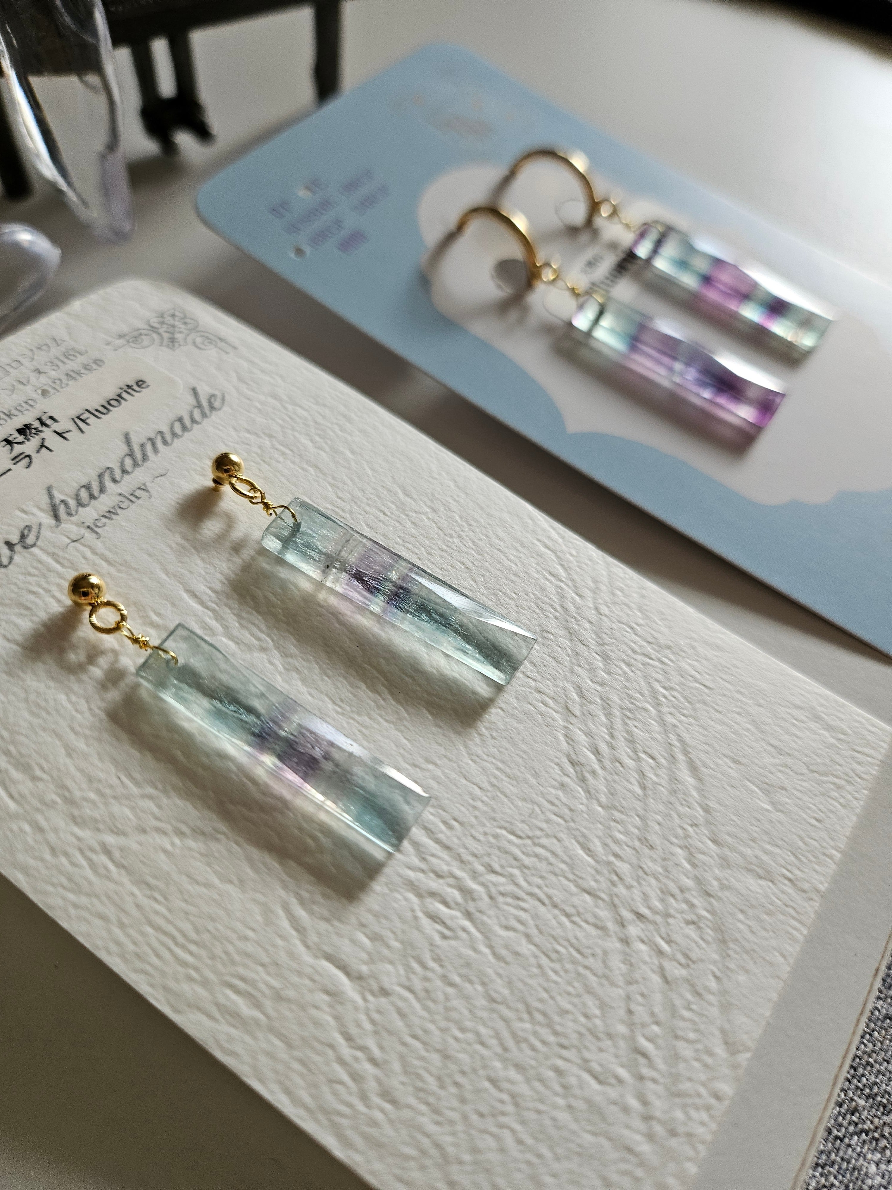 天然石の個性: フローライトは非常に繊細な石です。一粒ごとに異なる色の層やクラック(内部の亀裂)は、天然石ならではの風合いとしてお楽しみください。