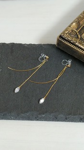 ポスト部はノンホールピアスと呼ばれる、付けるとピアスのような見栄えのイヤリングを採用しております。