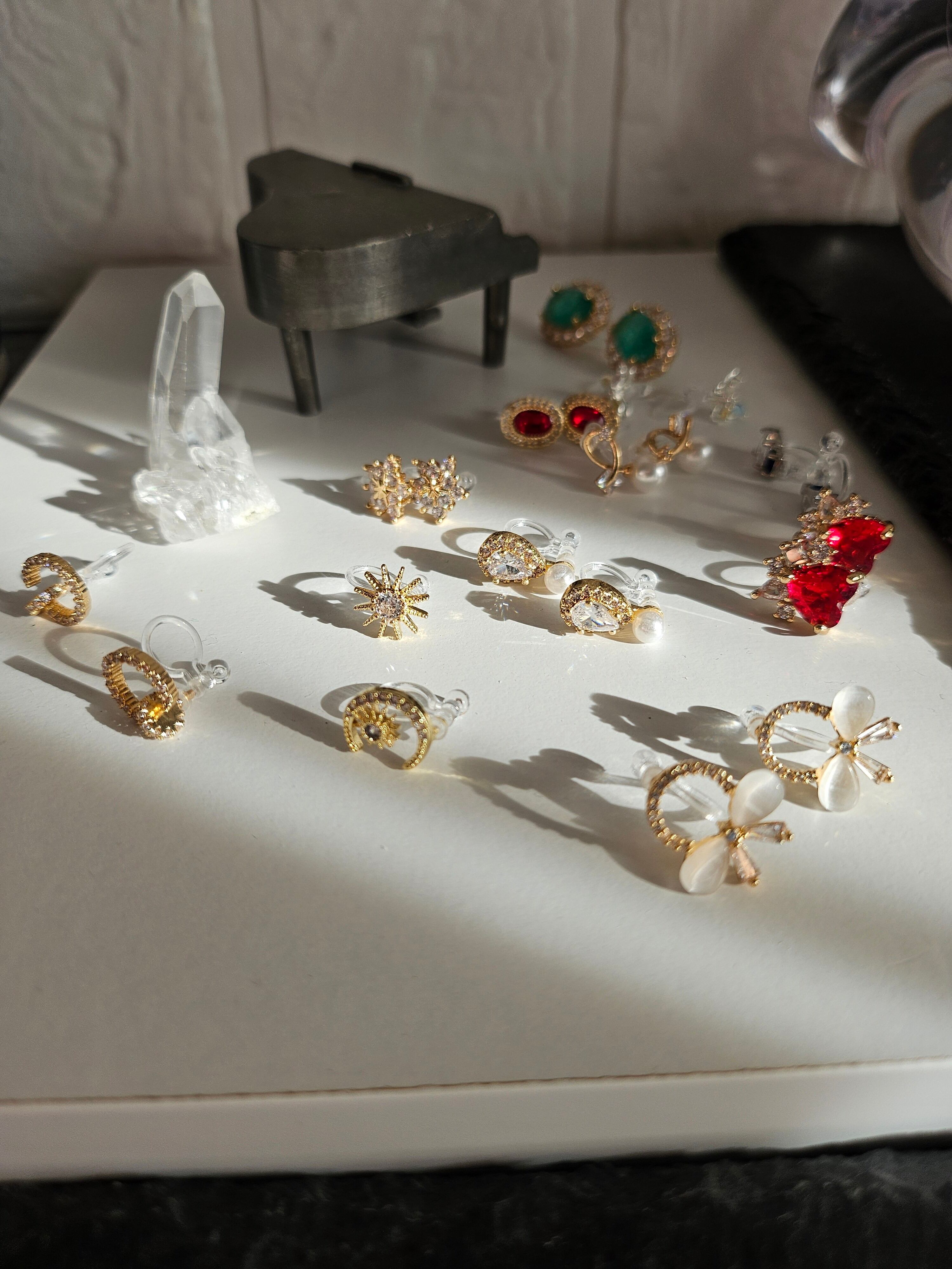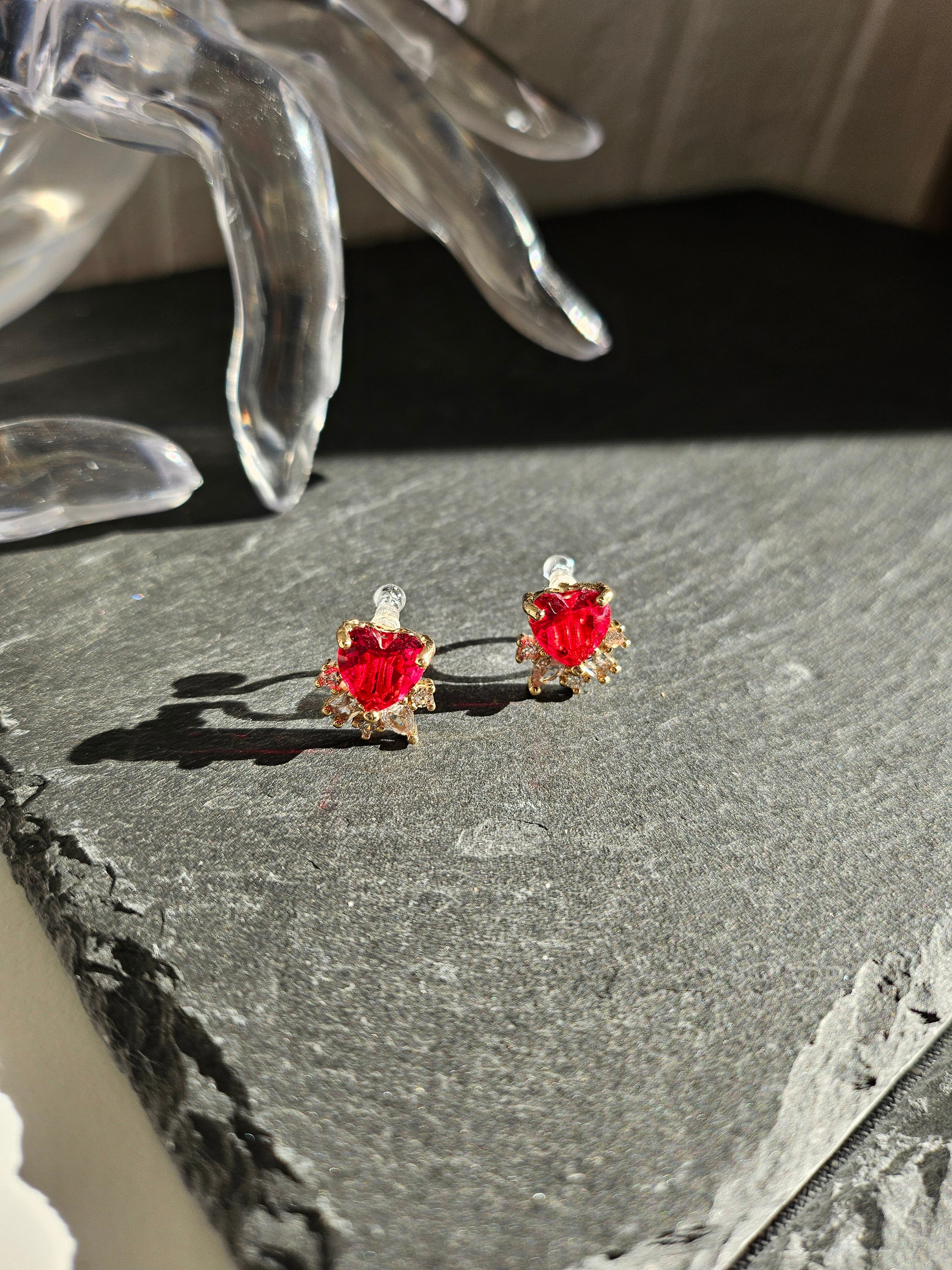 キラキラ赤いハートのpierce silver925とノンホール(イヤリング)